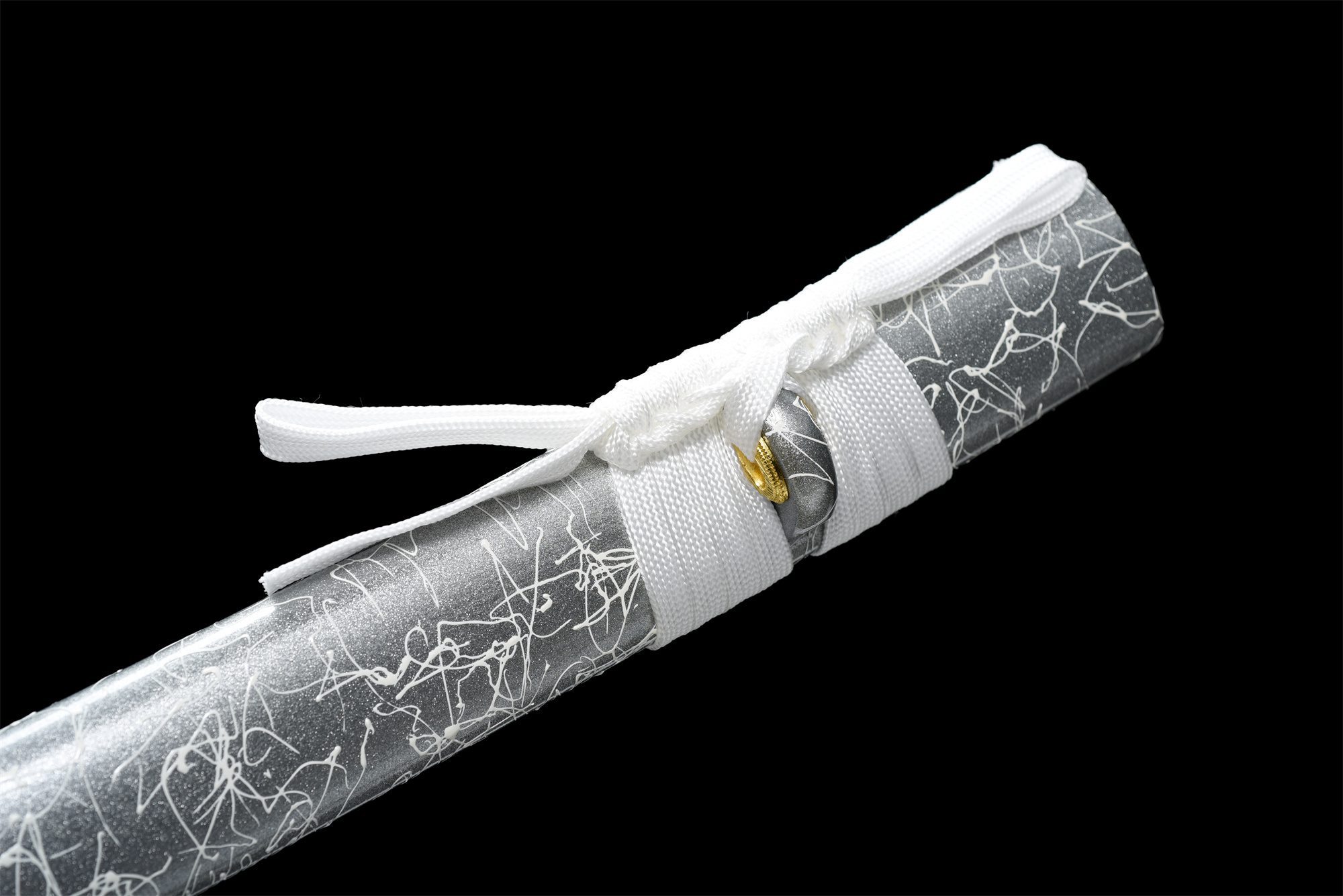 - Fodero (Saya 鞘): custodia in legno massello, laccato grigio con dettagli bianchi.