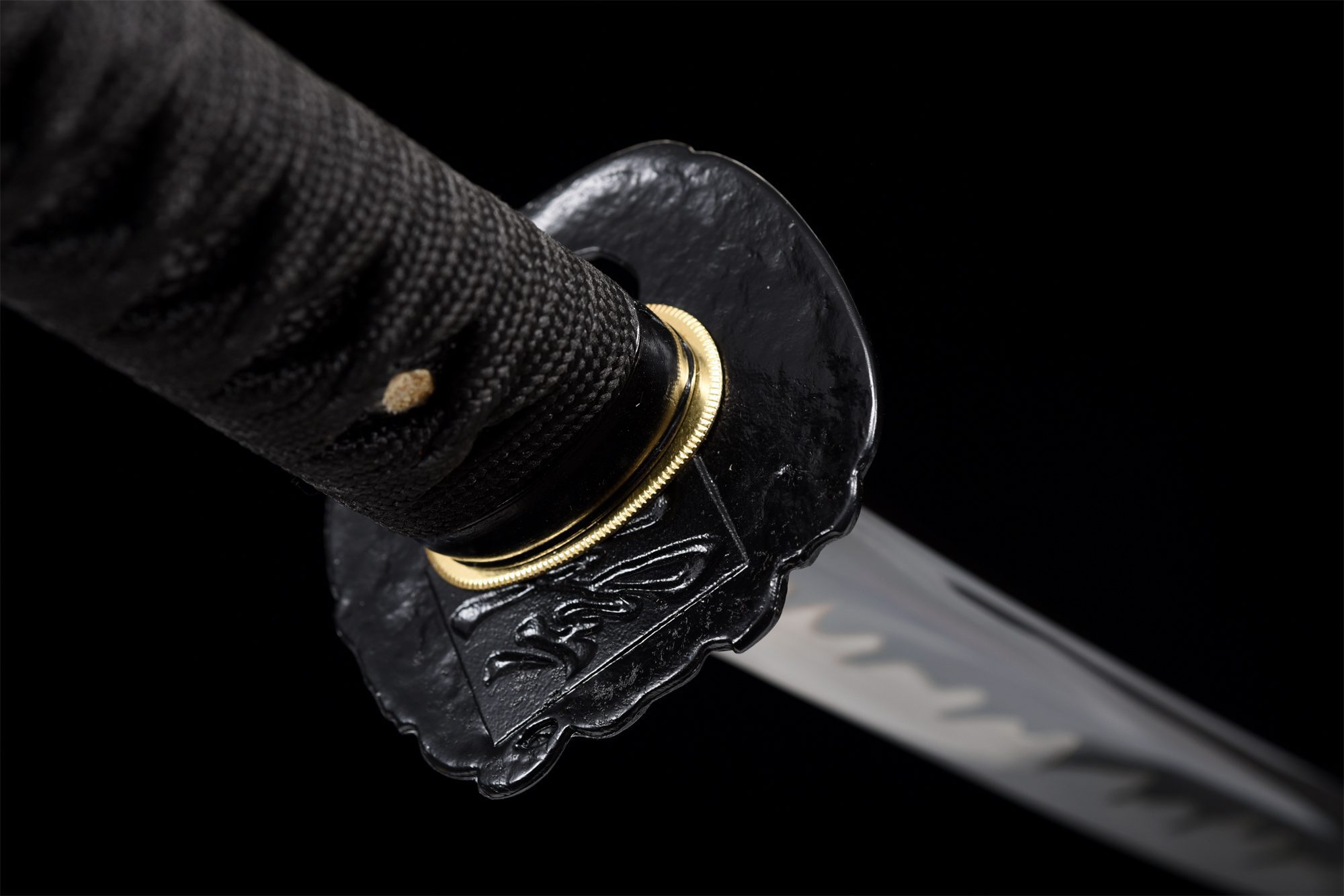 - Tsuka-ITO (柄糸): intrecciato nero con motivo a rombi.