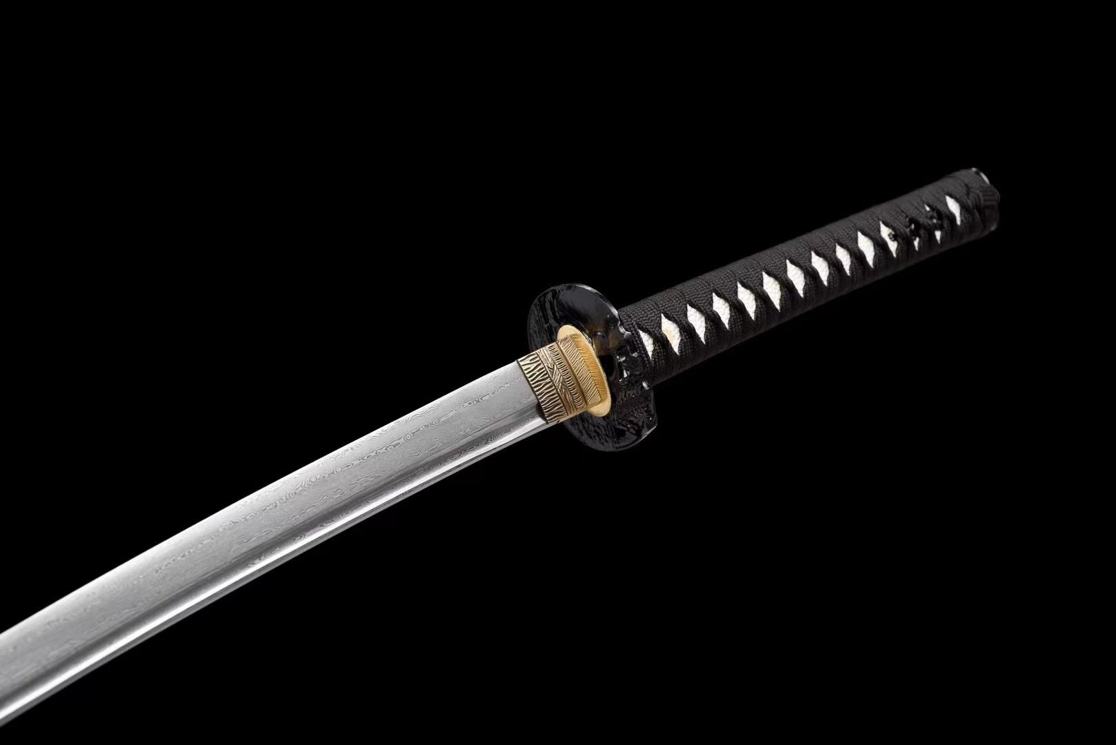 - Tsuka-ITO (柄糸): intrecciato in nero sopra l’impugnatura con motivo a rombi.