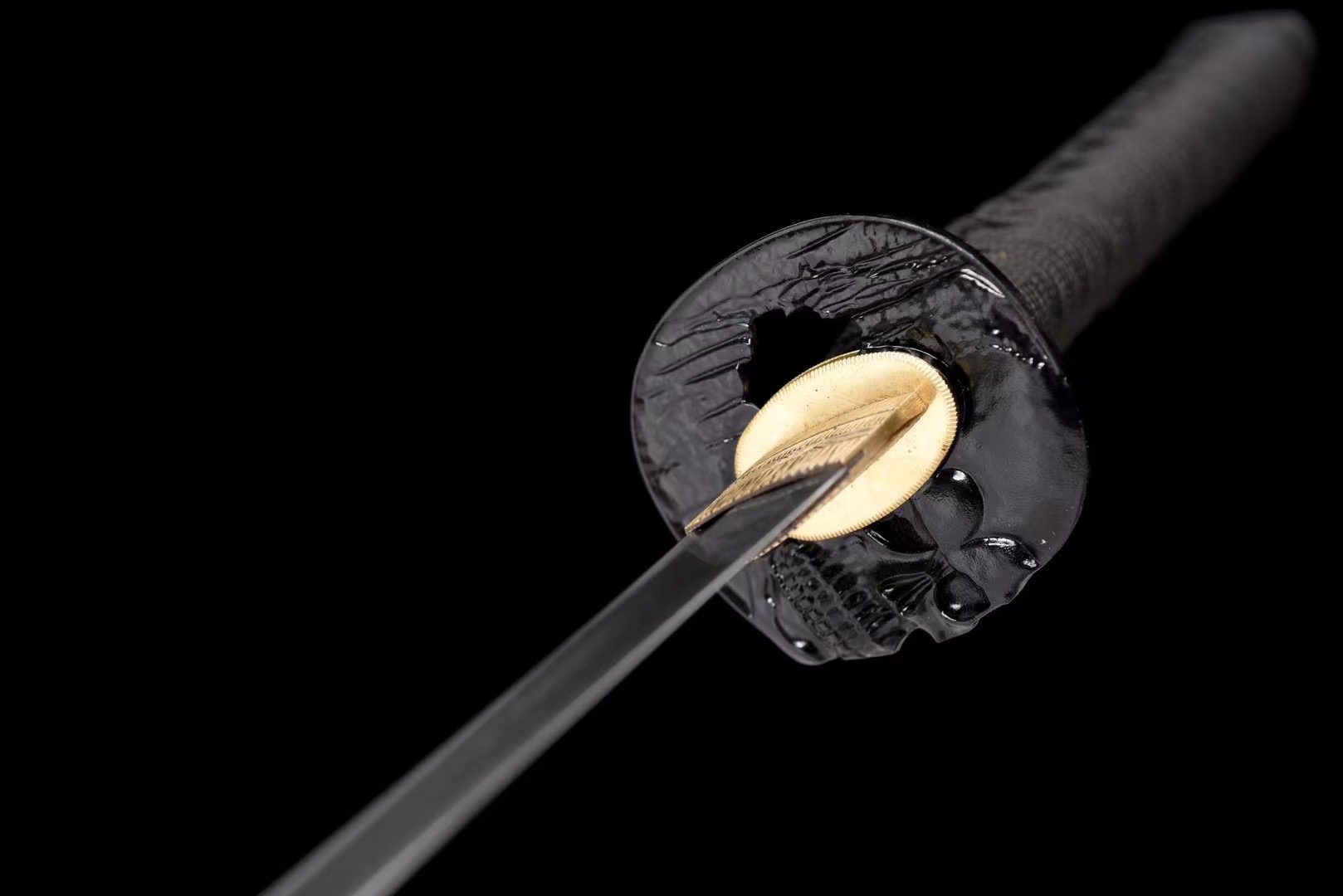 - Guardia (Tsuba 鍔): lega nera rotonda a forma di teschio.