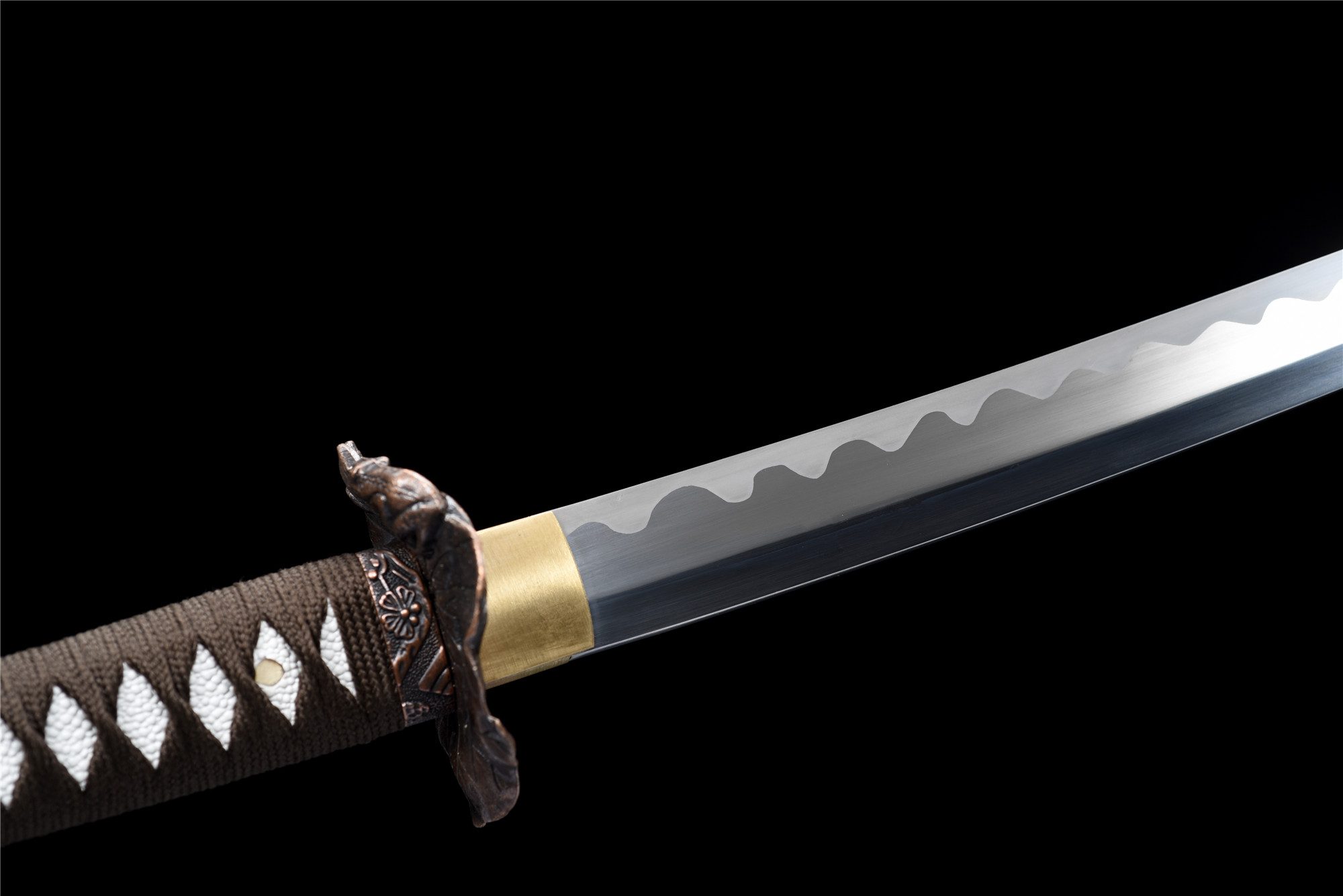 - Tsuka-ITO (柄糸): trama a rombi marroni sopra l’impugnatura.
