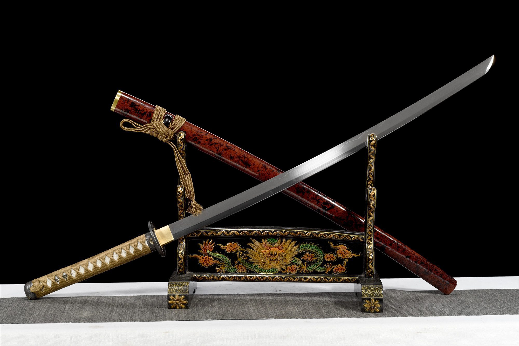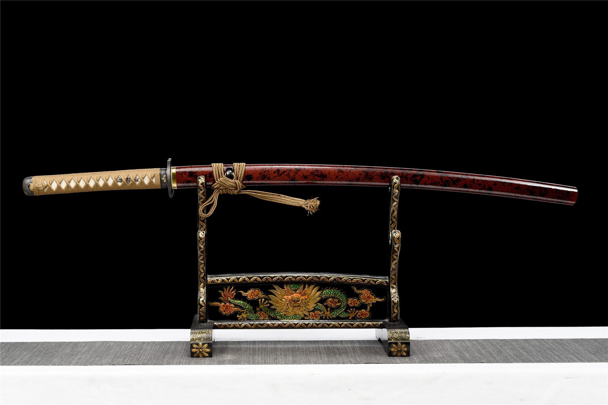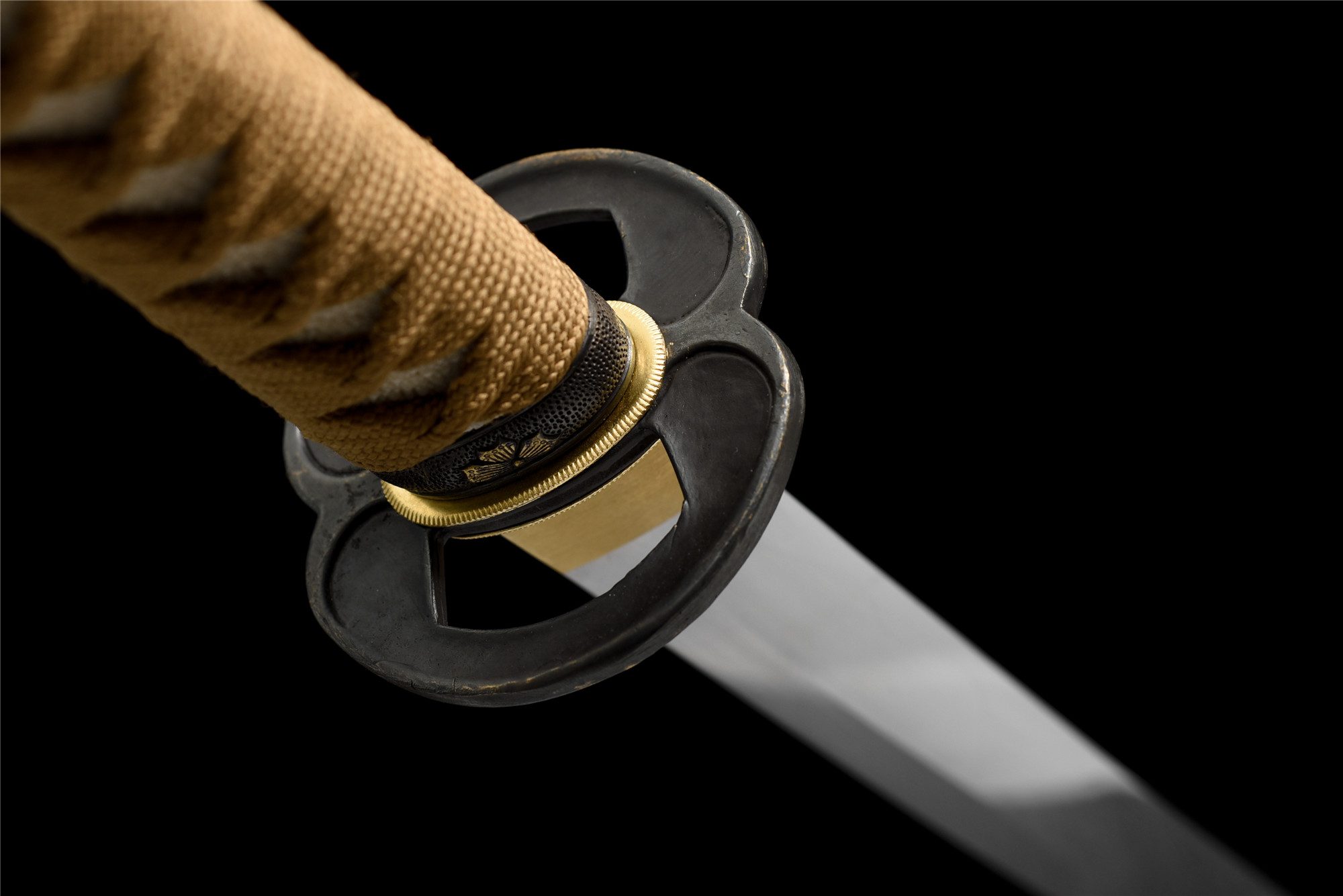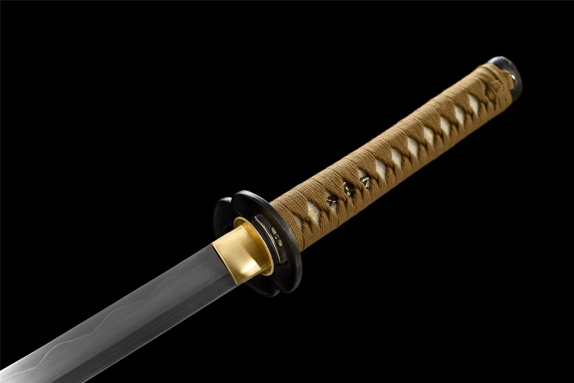 - Tsuka-ITO (柄糸): marrone dorato intrecciato sopra l’impugnatura.